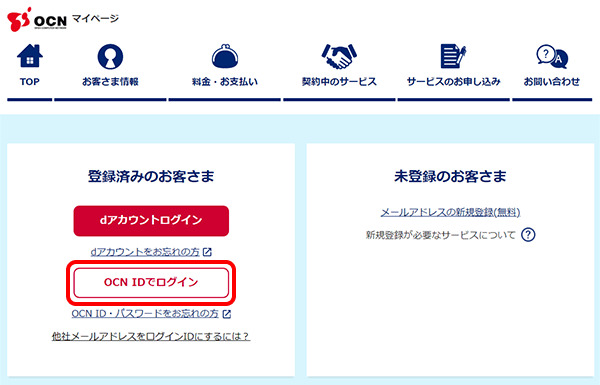 ※初めてご利用になる場合は、OCN マイページの利用登録手順を参照し、登録を行ってください。