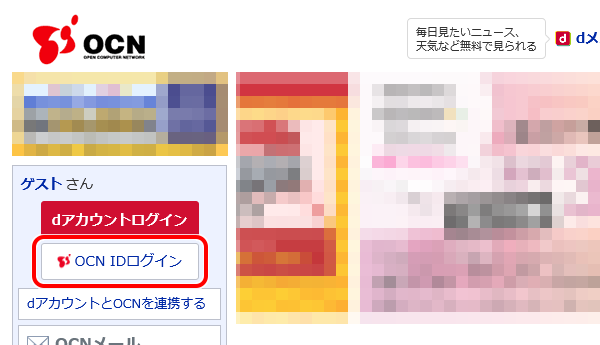 ※ ログイン後は[ゲストさん]の表示が、[~ さん OCN IDでログイン中]に変わります。
